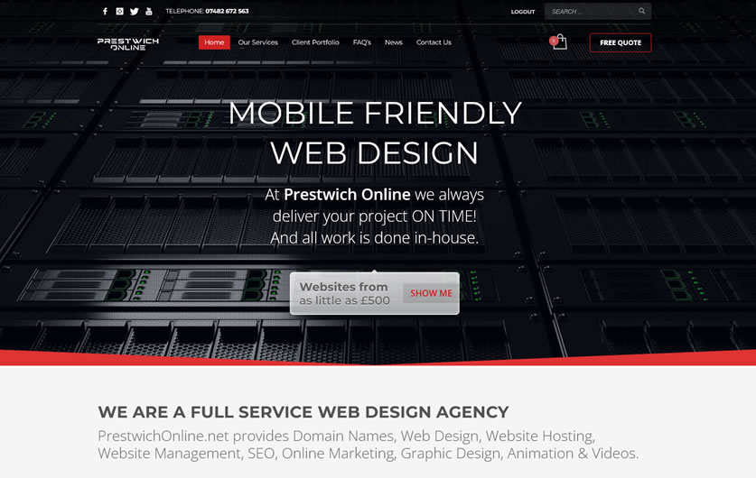 PrestwichOnline.net provides Domain Names, Web Design, Website Hosting, Website Management, SEO, Online Marketing, Graphic Design, Animation & Videos.
